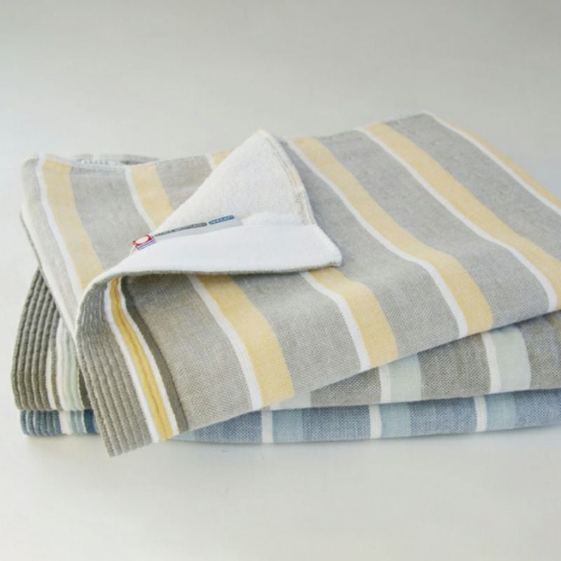 ビッグボーダーデザインをガーゼで織り上げ、裏はしっかりロングパイルの肌触りのいいタオルです。
