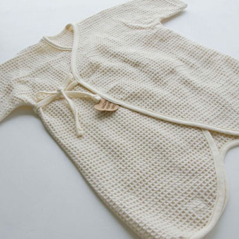 オーガニックのワッフル生地で作った肌着は、かるい肌触りです。