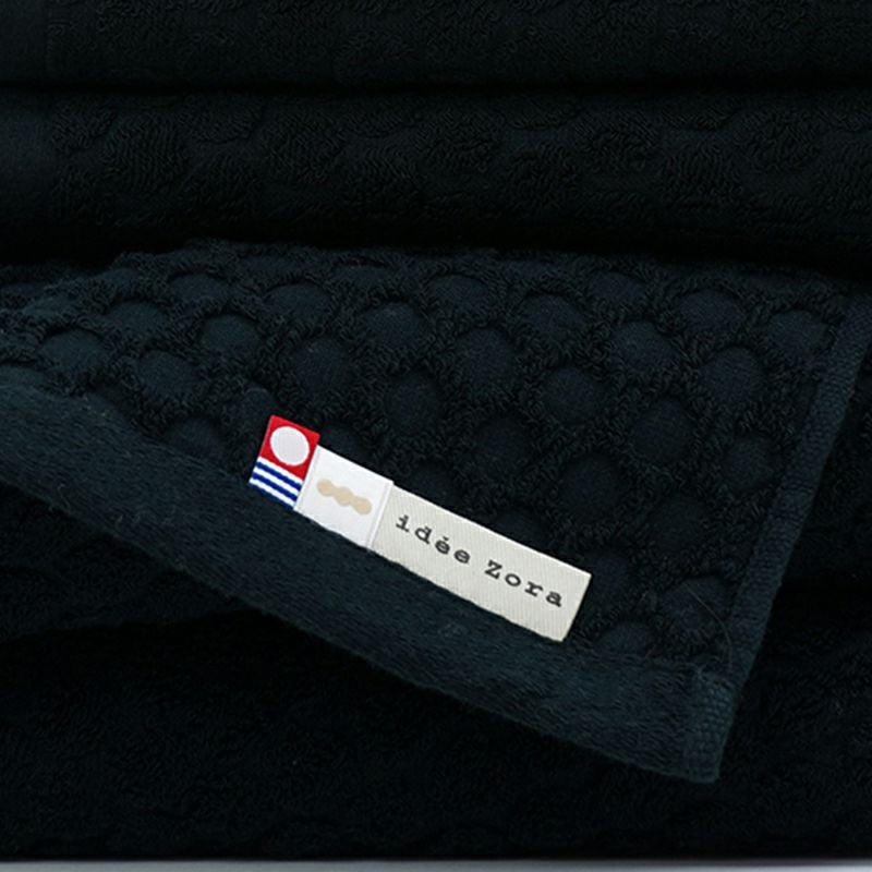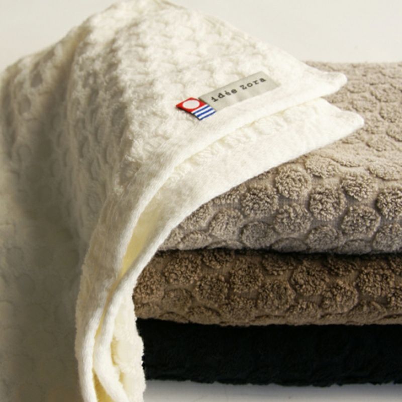 タオルのミミの真ん中についてある“idee Zora”のロゴテープは、フックにも掛けることができて、とっても便利。安心の今治タオルブランド認定商品です。