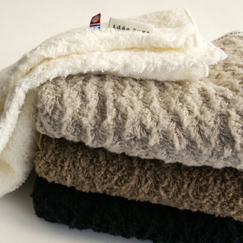 無撚糸を使用した、ふわふわの肌ざり。イデゾラの基本カラー4色に加え、ピュアホワイトも誕生しました。