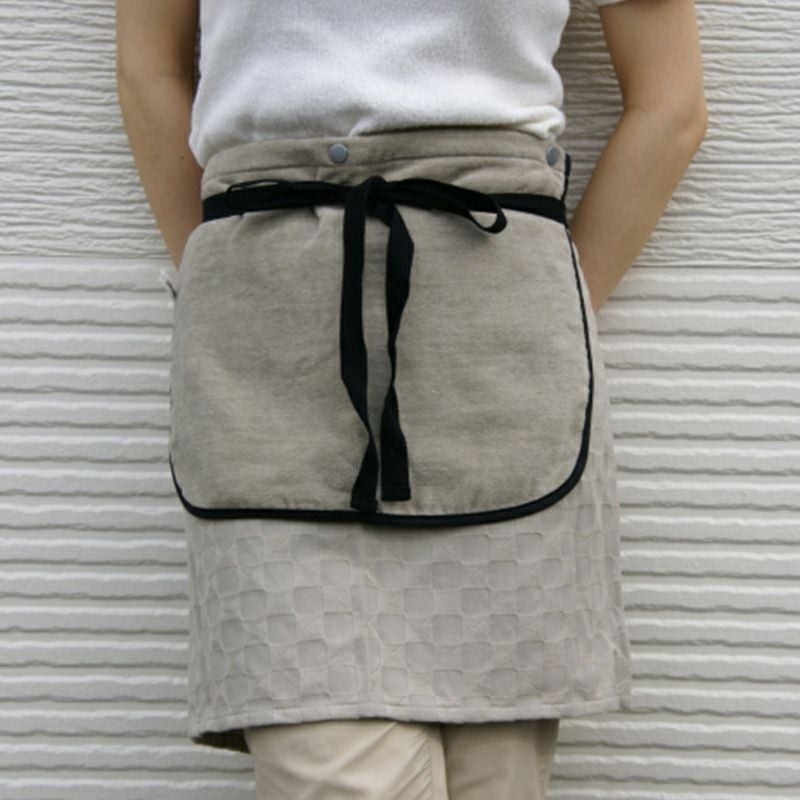 おしゃれな腰巻きタイプのギャルソンエプロンを中心に、キッチンでも活躍するアイテム。一部のコレクションでは、付属のお手拭タオルがホックで取り外しできます。
