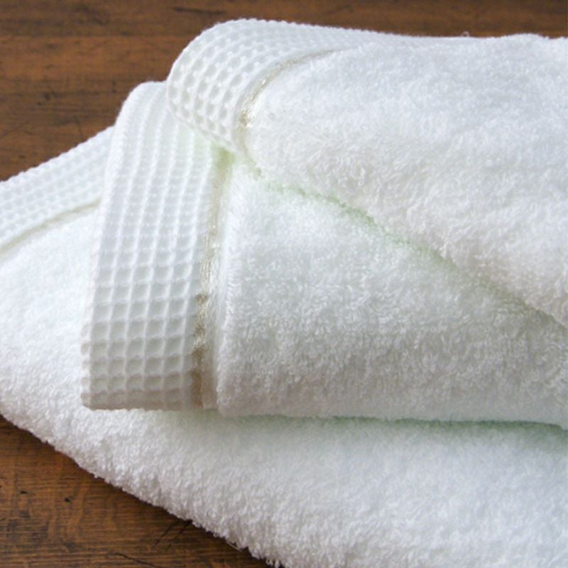ギリシャの希少性が高いオリンピアコットンを使用。ロングパイルに密に織り上げて、ビンテージ風のデザインに仕上げました。