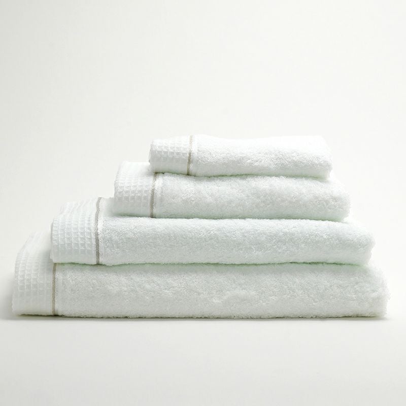 甘撚りの糸を使用し、ふんわりとした肌触りが特徴のやさしいタオルです。ほのかに輝きを放つ繊細なボーダーラインがとても上品です。