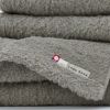 ローラーにより一度順目で起毛して更に逆目で起毛をかけます。するとより絡み合って毛羽が発生しにくくなります。もこもこした柔らかい風合いで一見毛羽落ちが多いような気がしますが通常のパイル織物よりはるかに毛羽落ちが少ない高機能加工となっています。(脱毛率 0.01%)