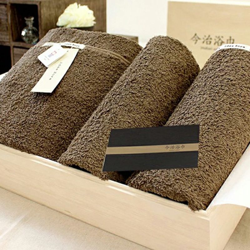 バスタオル1枚、フェイスタオル2枚を豪華木箱にお入れしてお届けします。