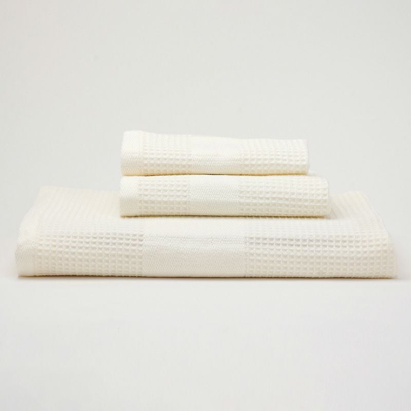 細番手の糸を使用し、パイルのないワッフル織りで凹凸感を出し、素材の質感を表現しています。