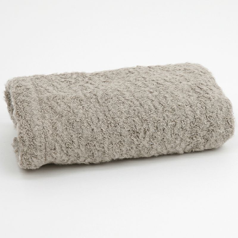 ギリシャの希少性が高いオリンピアコットンを使用。ロングパイルに密に織り上げて、ビンテージ風のデザインに仕上げました。